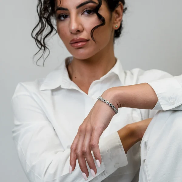Sapphire: Sapphire and White Silver Tennis Bracelet