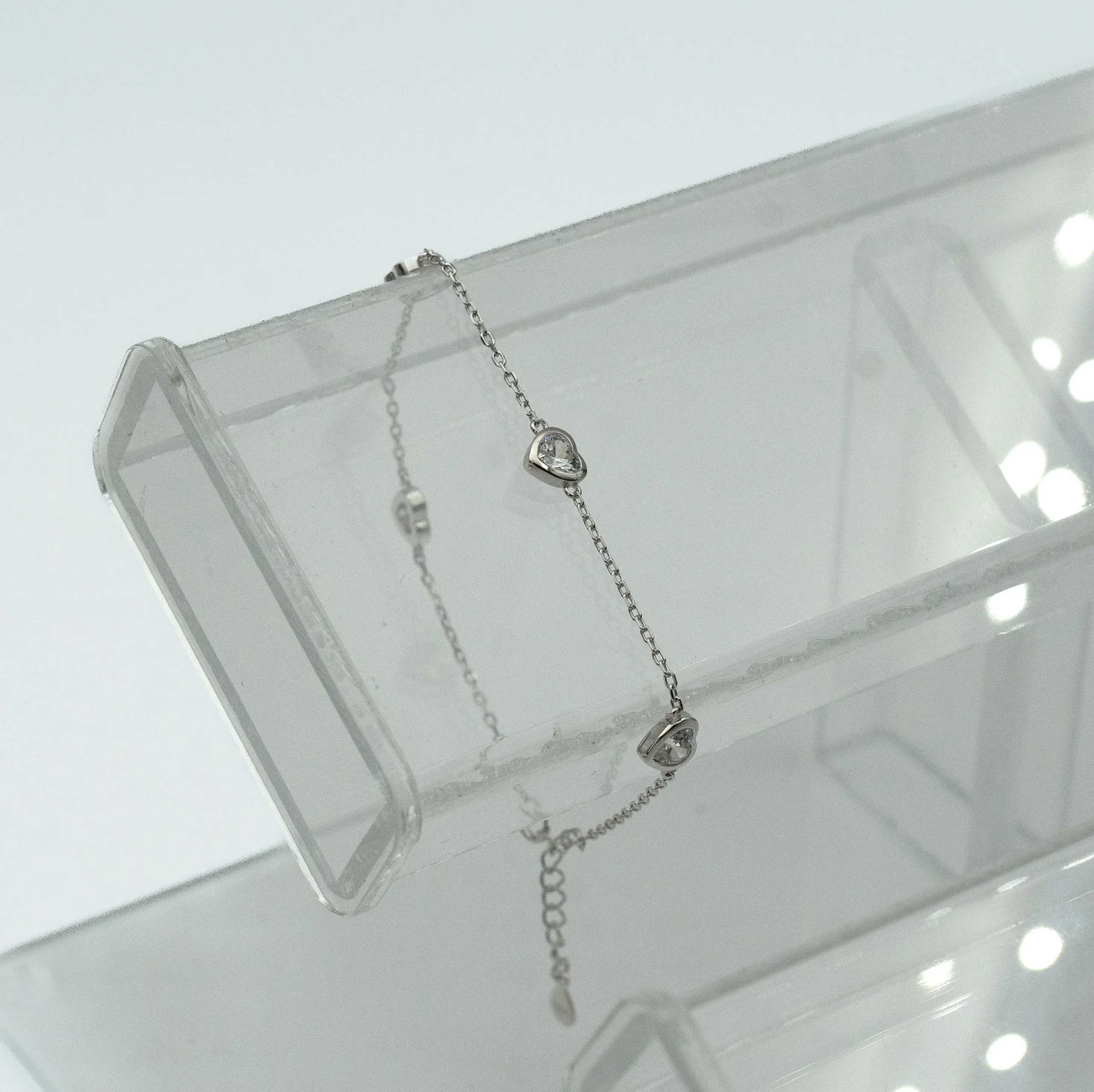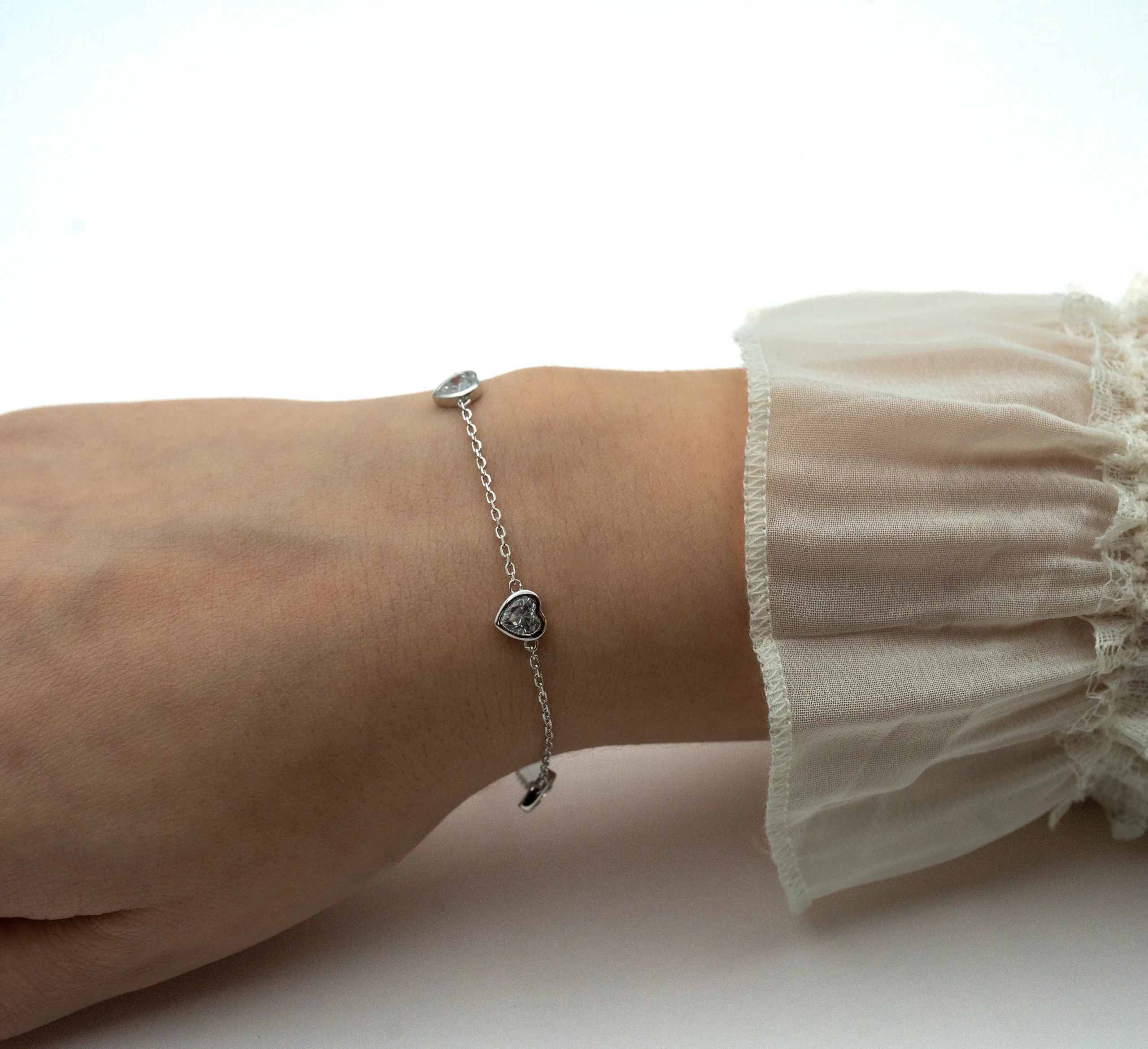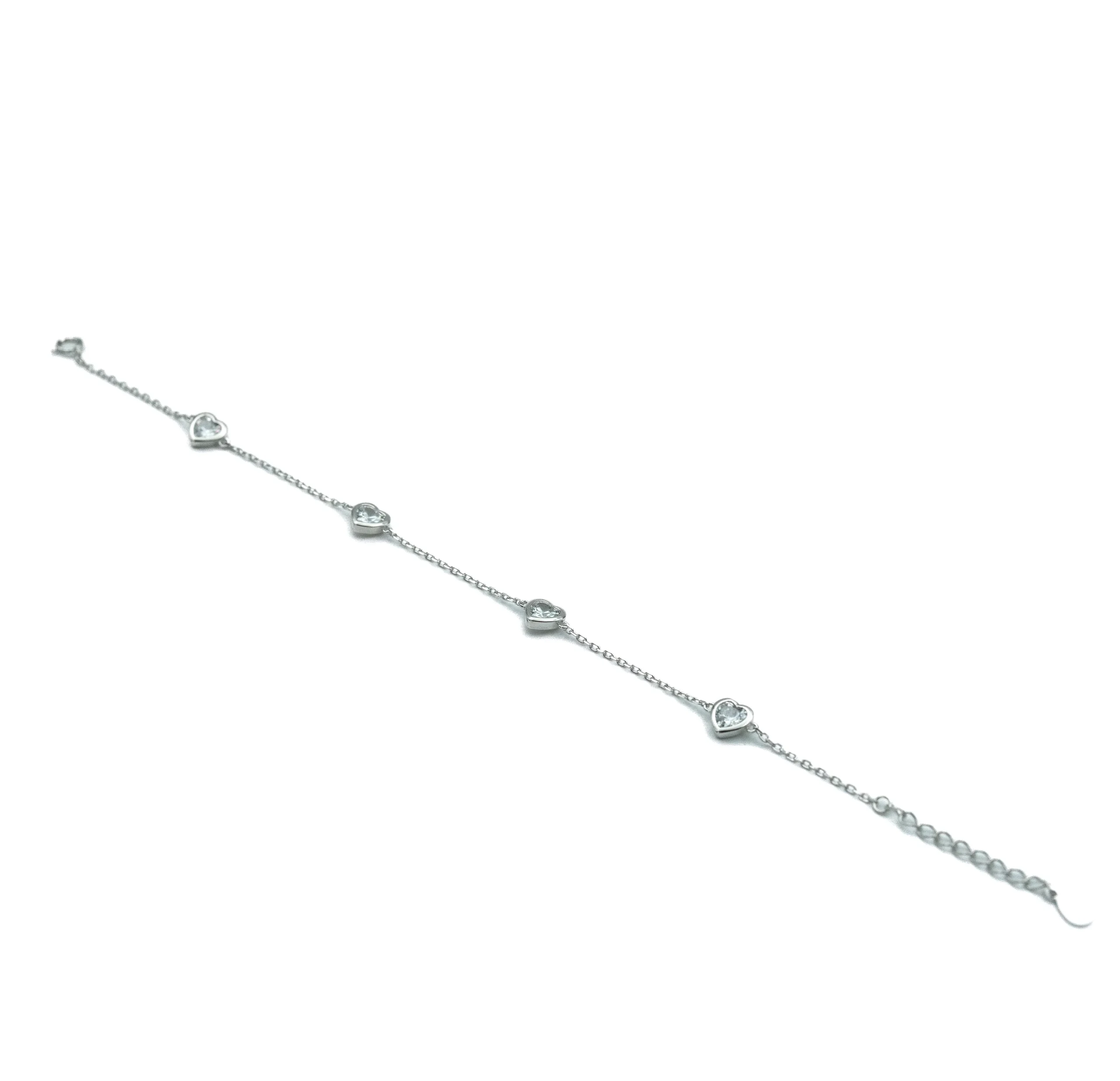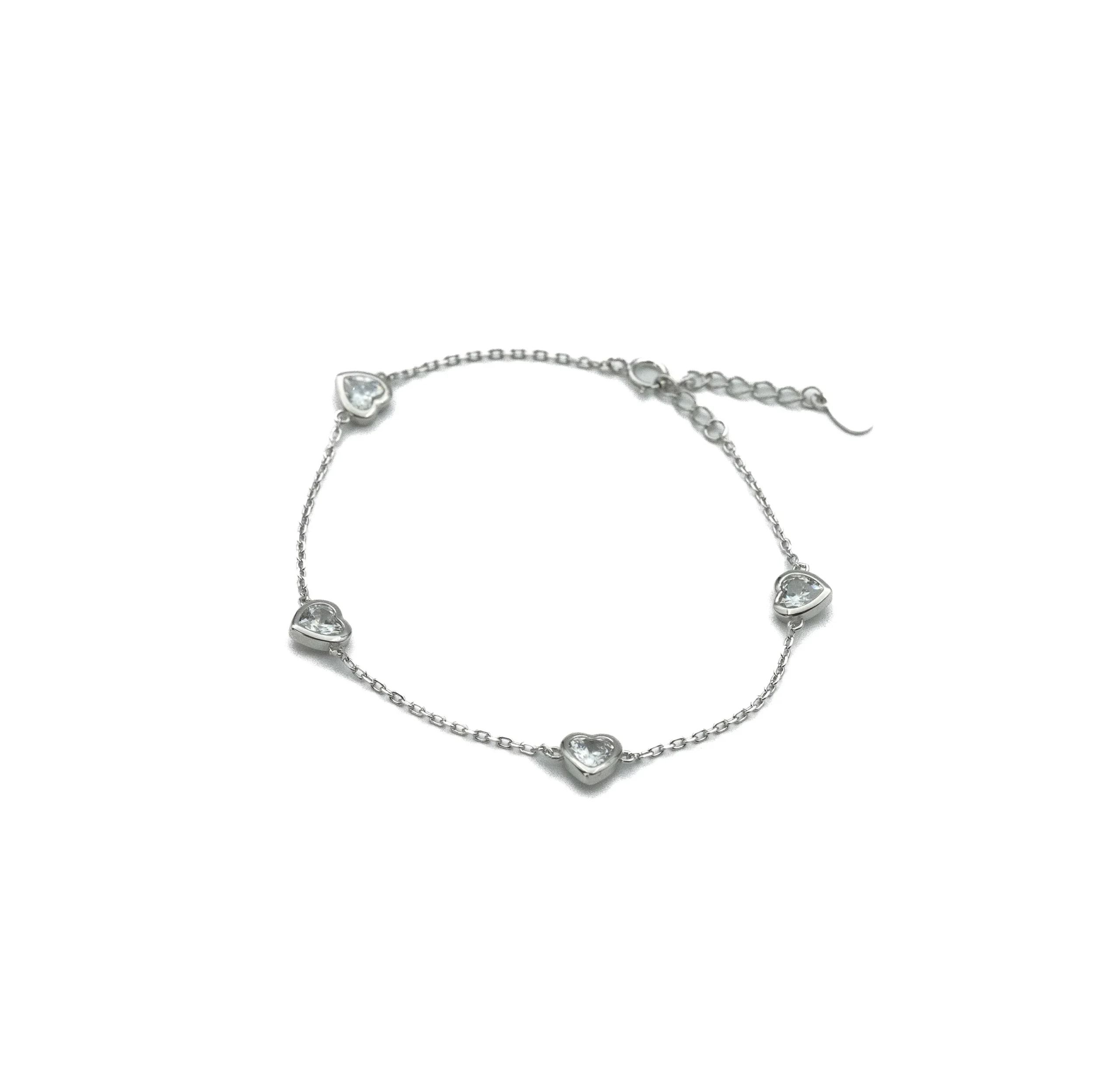 Amarli: Dainty Sterling Silver Bracelet with Four Gemstone Hearts