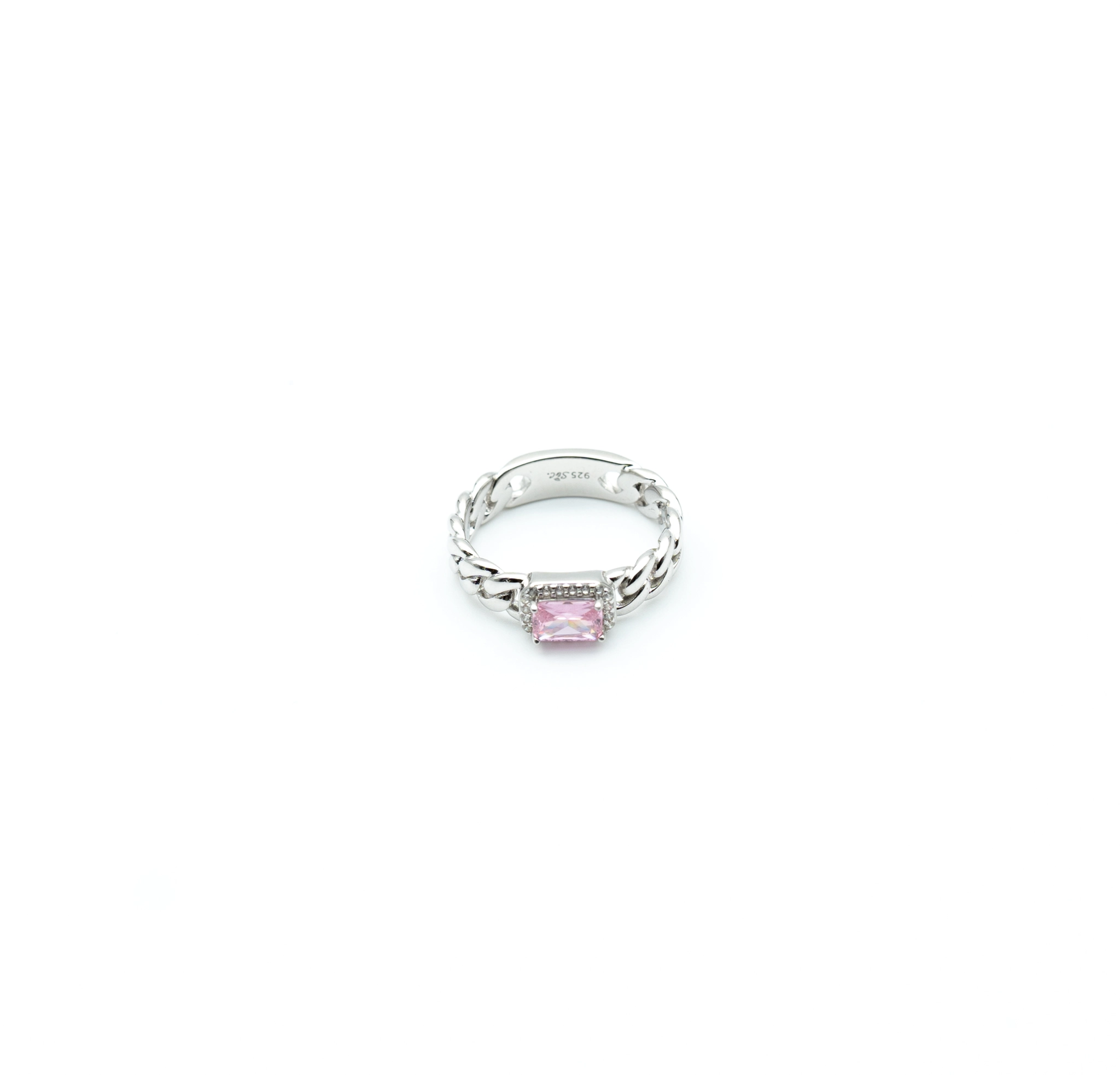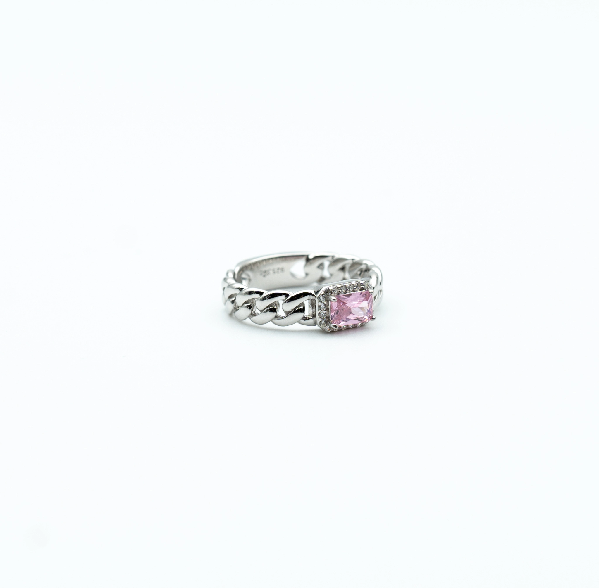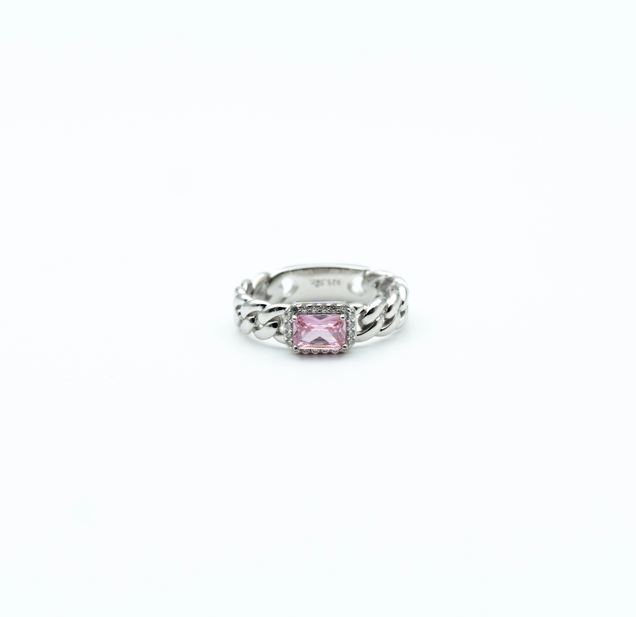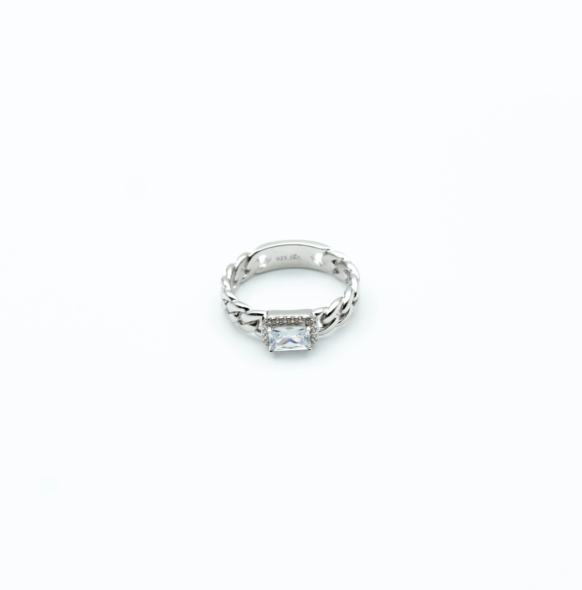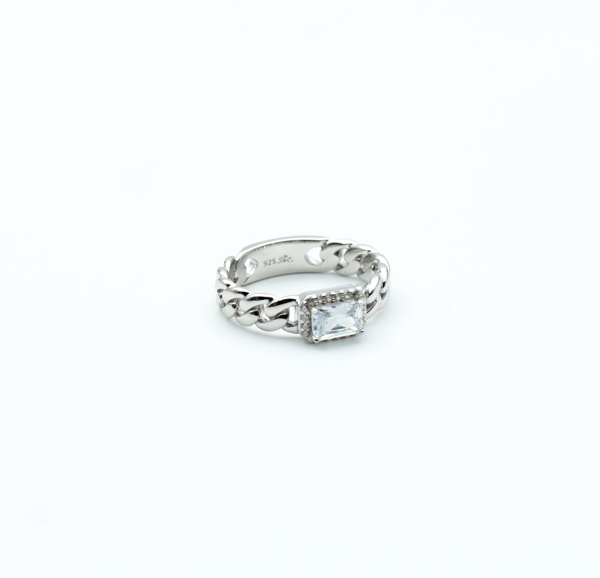 The Diva: Sterling Silver Cuban Link Ring with Rectangular Stone