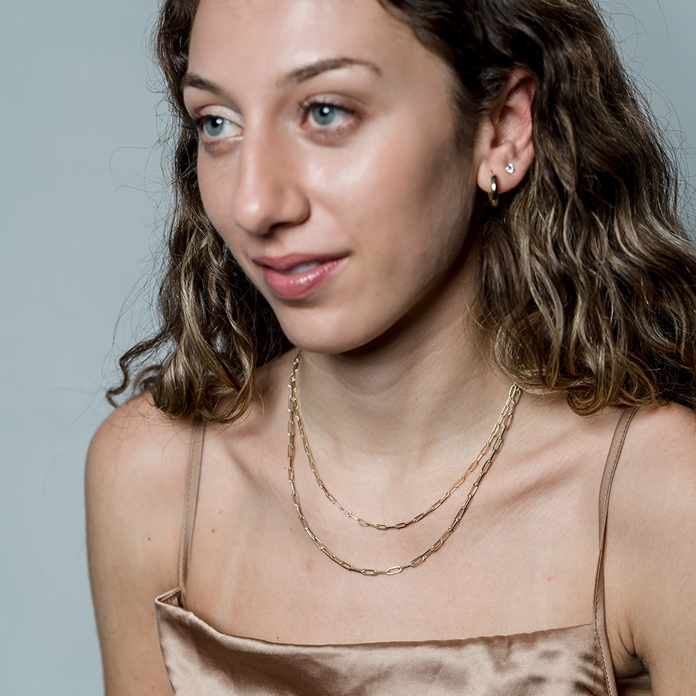 A timeless yet modern design, this 14k gold plated sterling silver paperclip necklace is perfect for any occasion.